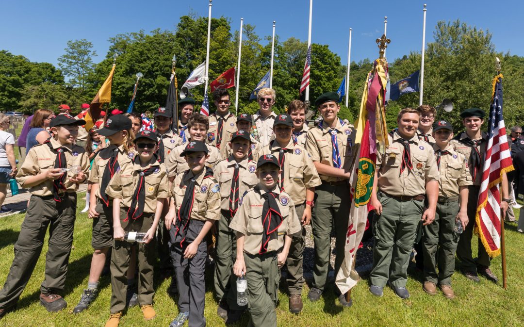 The Troop came out in force to honor our Veteran’s this Memorial Day. We marched from SMS to the Ivandell Cemetery in Somers. In preparation for Memorial Day the Troop replaced all the American Flags at the cemetery on all Veteran’s graves.