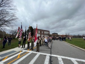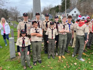 Maintaining its annual tradition, Troop 376 participated in the Town of Somers Veterans Day Parade on Friday, November 11th, 2022. Three of our Scouts served as Color Guard (Jackson R., Aidan K., and Aiden Q.), while others marched as part of the BSA Scouts contingent or performed with the Fife & Drum band. Fortunately, the rain held off for the most part, and the parade and subsequent ceremony were able to proceed without issue.