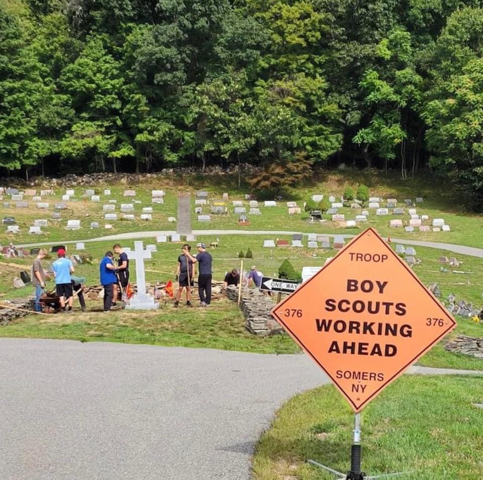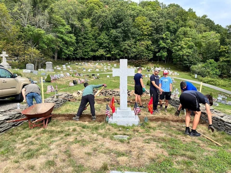 Ryan’s Eagle Scout project involved the labor-intensive process of relocating a stacked-slate stone wall at Saint Joseph’s Cemetery in Somers, creating space for the construction of a new columbarium. New plantings also beautified the area.