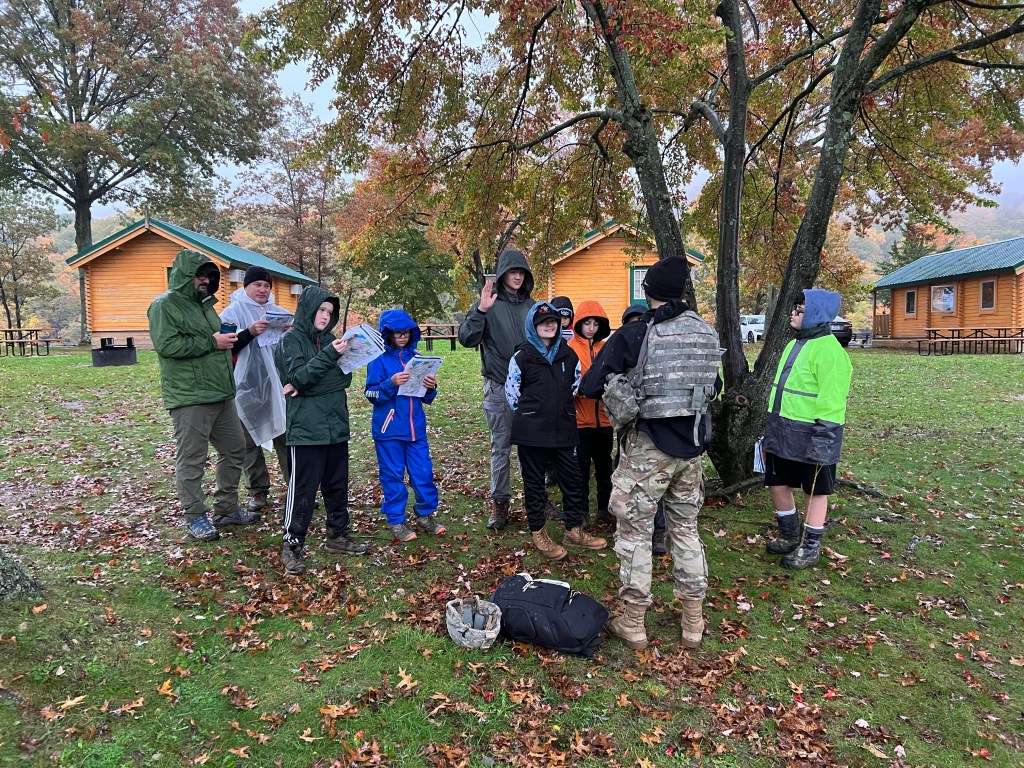 From October 20-22, Scouts from Troop 376 embarked on a wet, muddy, windy, and all-around AWESOME orienteering adventure at West Point’s Lake Frederick. Organized and run by cadets from the U.S. Military Academy’s Orienteering Team, the Scouts learned the ins and outs of using a map and compass to navigate a course, reaching specific objectives along the way.