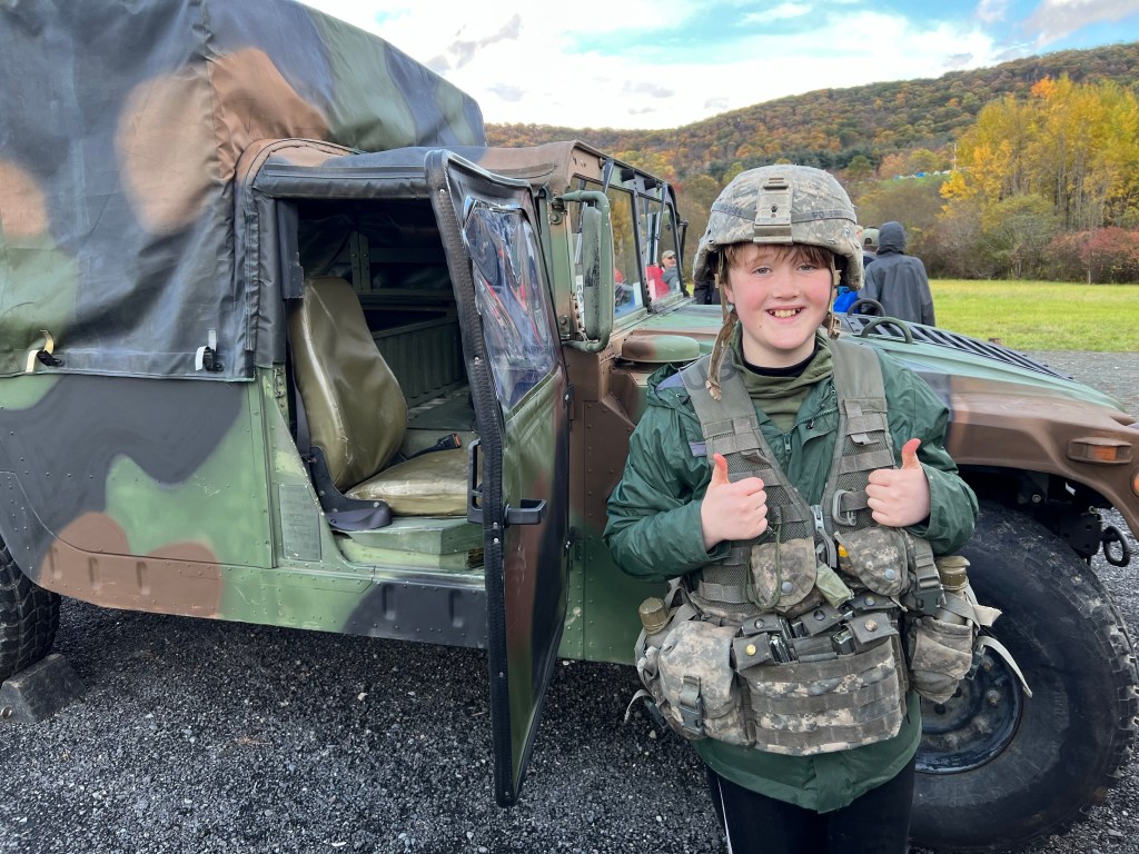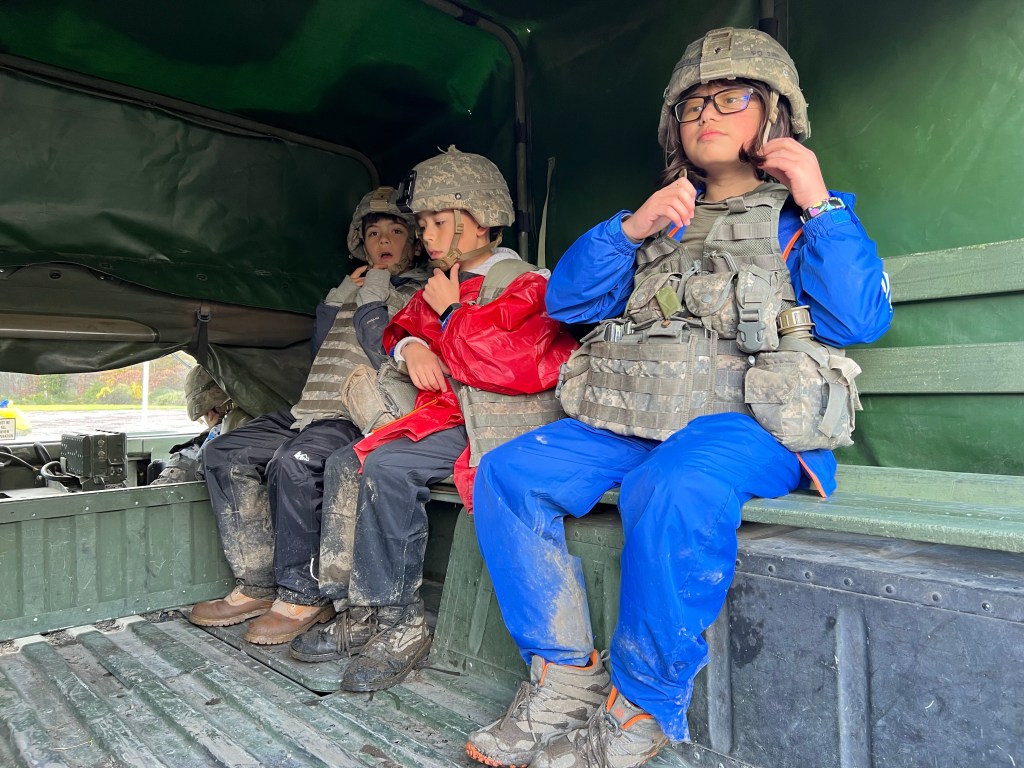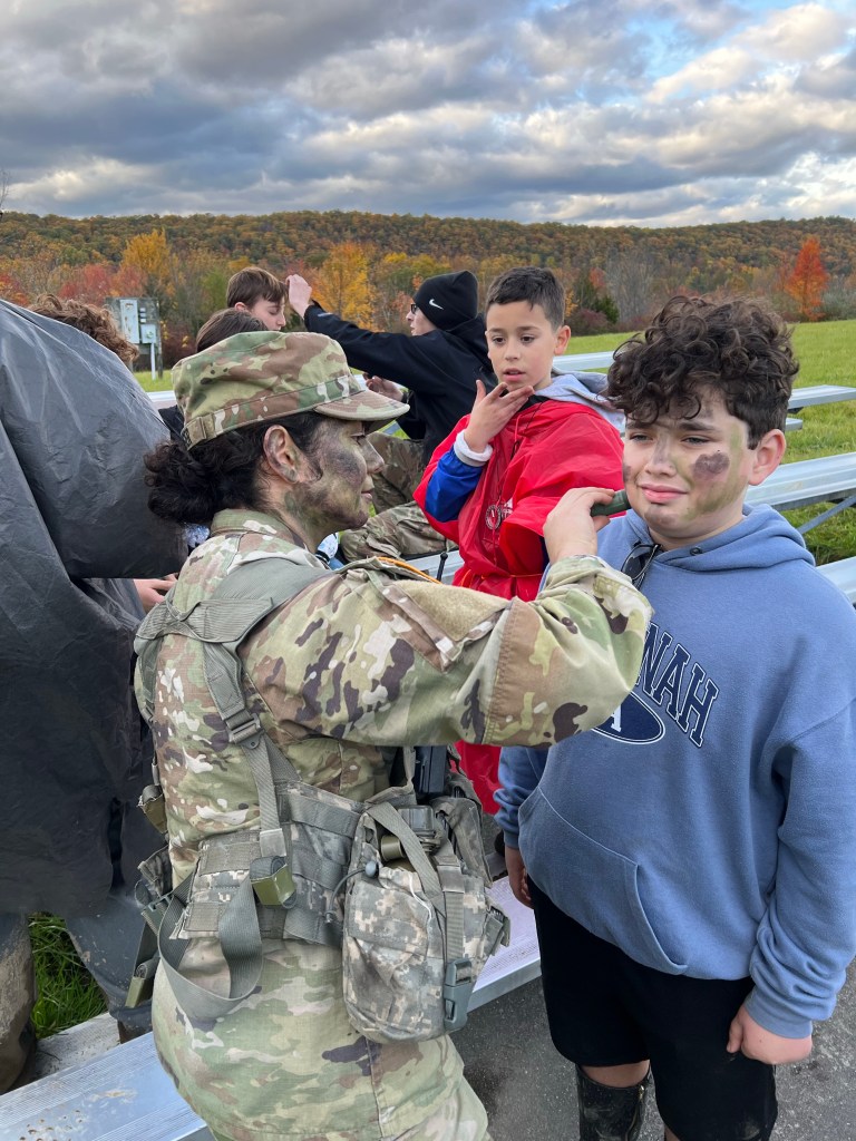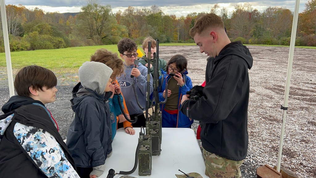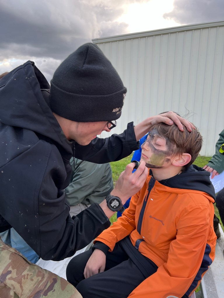 The Scouts set up camp on Friday night and spent Saturday morning training with our assigned cadet guide. Breaking into smaller groups of 2-3, they ran two orienteering courses on Saturday afternoon before getting a small taste of what military training is like. The Scouts were given the opportunity to inspect and try on gear, as well as run through a drill-style exercise. Saturday evening wrapped up with a chili competition (which we inexplicably did not win) and a large bonfire.